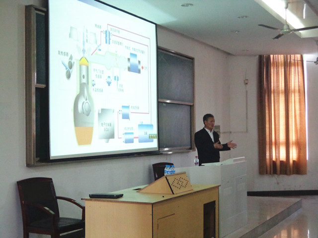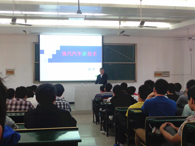 下午16点整,伴随着全场师生们热烈的掌声徐军教授开始了精彩的专题讲座。与以往的讲座不同的是,徐教授的讲座是在同学们的身边进行的。全场一个多小时的讲座,他始终站在同学们的身边,与同学们融合在一起充分互动。徐教授结合自己30多年的汽车维修实践经验、对汽修行业的深刻理解,以及对职业教育的深入研究,分别从我国汽车发展简史、我国汽车行业面临的挑战、汽车维护、汽车维修几个方面向同学们介绍了汽车运用与维修专业的发展趋势及其前景。鼓励同学们要有吃苦耐劳精神,多动手、多实践,苦练技能,要到企业中去,从车间里踏踏实实做起。他向同学们介绍了汽车最新的发展技术——新能源汽车,分析了未来汽修行业发展的方向,鼓励大家向高层次的汽修人才—汽车维修工程师发展。