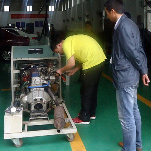 为促进汽车专业学生理论与实践结合,提高动手能力,增加同学间的竞争意识。机械工程系于5月17下午在汽车实训场地举行了汽车发动机维修技能大赛。
