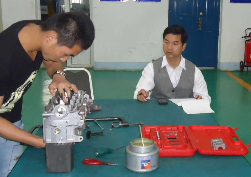 此次参赛选手主要是12级汽车专业的同学。比赛开始,先是气门锁片,从大号到小号依次参赛,然后是油电路故障,从小号到大号依次参赛。同学们认真琢磨,结合老师所讲的理论知识,淡定从容的完成了比赛任务。12汽车2班刘洋用优异的成绩获得了比赛第一名。