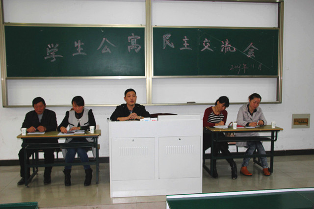 为了贯彻落实省教育厅和学院指示要求,广泛听取学生意见和建议,提高学生公寓服务质量。学院公寓办于11月1日下午在阶梯101教室召开学生公寓民主交流会。武保部相关领导、五系学生秘书、院系学生会生活部成员和13级新生班班长、生活委员等200余人到会参加。