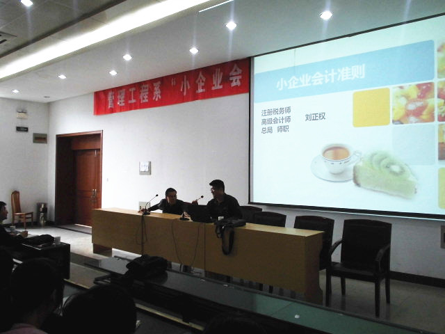 刘正权专家从小企业角度出发,具体而又深刻地讲述了我国小企业准则出台的背景和目的、发展概况,并以“为什么要制定小企业会计准则”、“哪些企业适用小企业会计准则”、“小企业会计准则的这点和特色是什么”以及“学习应用小企业会计准则需要注意什么”四个问题为切入点,阐释了2013年1月1日起实施的《小企业会计准则》的适用范围、特点及内容,并佐以大量的实务案例。这给了在场师生一个全新的视角,此次讲座使在场师生对我国小企业会计准则和我国小企业的发展有了一个全新的视角,并形成更加深刻的认识。(稿件来源:管理工程系)