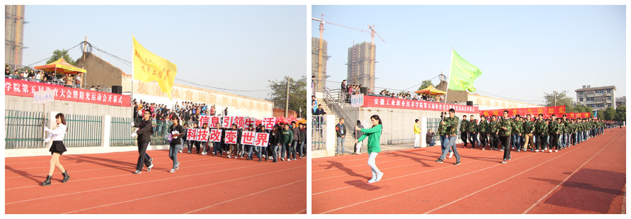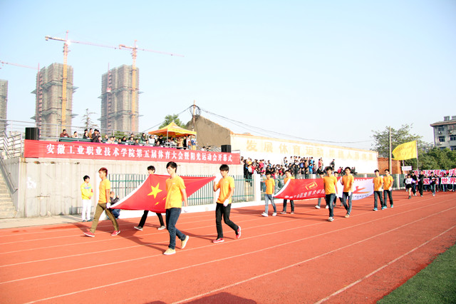 在庄严的升旗仪式过后,学院副院长李庆峰为大会致开幕词,副院长周理瑞宣读了第四届体育大会获奖名单,学院裁判员代表和学生运动员代表分别进行了宣誓。最后院长陈世虎宣布安工学院第五届体育大会暨阳光体育运动会正式开幕。