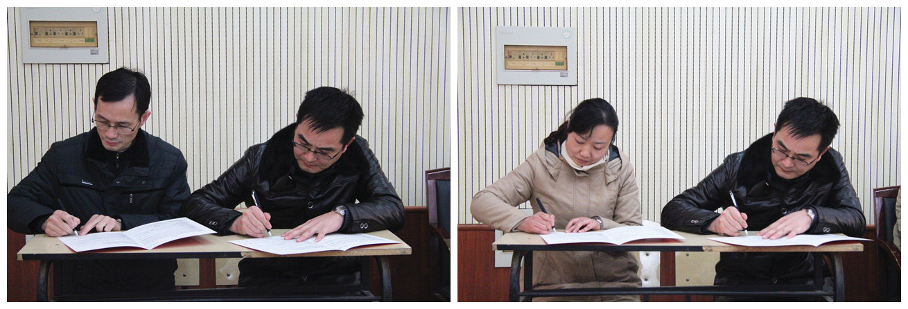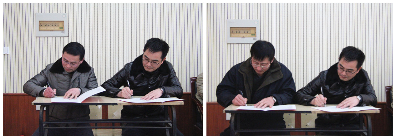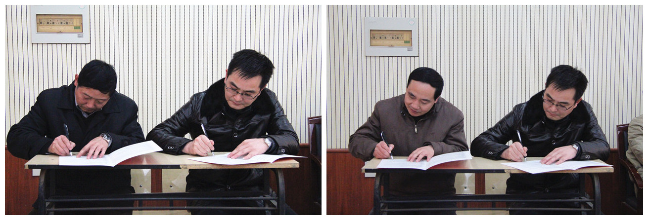 会上,学院领导和学院全体教职工代表进行了分组讨论。代表们畅所欲言,为完善学院规章制度和特色创建工作献计献策。下午的会议上,大会一致通过了《金年会jinnianhuicom2014年工作会议暨一届八次教职工代表大会关于学院工作报告的决议》、一致审议通过了《金年会jinnianhuicom一届八次教职工代表大会关于学院员工奖惩办法的决议》和《金年会jinnianhuicom一届八次教职工代表大会关于建设“节约型校园”指导意见的决议》。院长陈世虎和学院各系部负责人签订了系部工作责任书。