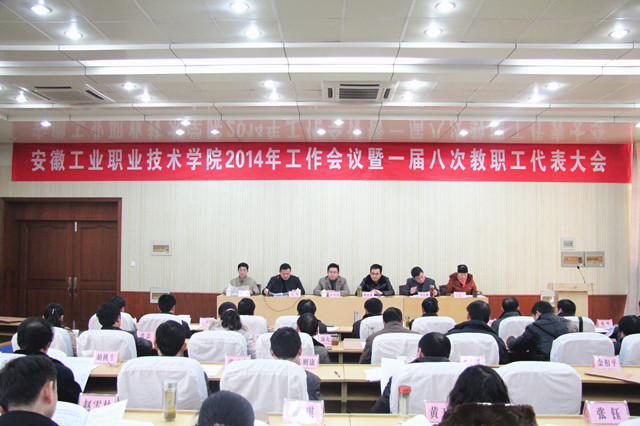 上午8:00,大会在庄严的国歌声中正式开幕。院长陈世虎首先代表学院作了《改革创新转机制,调整强基育核心,为全面实现2014年方针目标,促进学院持续进步而努力奋斗》的工作报告。报告首先从教学工作、学生工作、招生就业、市场培训、师资队伍建设、经营管理、党建思想政治工作等方面对学院2013年的工作进行了全面的回顾,总结了过去一年来各项工作所取得的成绩。报告结合学校实际,客观地分析学院当前发展中面临的机遇和挑战,明确了2014年的工作思路和总体部署。报告思路清晰,目标明确,措施得力,鼓舞人心,为学院今后的发展明确了方向。学院常务副院长李庆峰代表学院作了2013年财务工作报告。办公室负责人作2014年度综合计划大纲报告。政治人事部负责人就员工奖惩办法进行了修改说明。学院副院长周理瑞作建设“节约型校园”指导意见的说明。