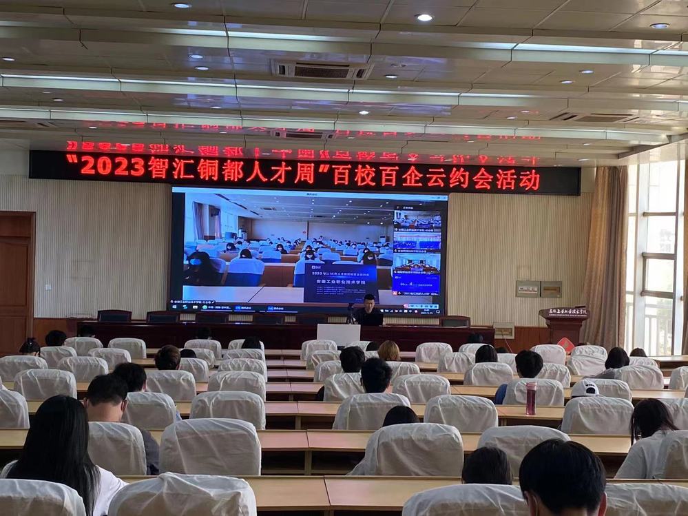 5月15-19日,由铜陵市委人才工作领导小组主办,铜陵市委组织部、市人力资源和社会保障局承办的2023年百校百企“云约会”活动盛大开幕。此次活动以“铜揽英才陵创未来”为主题,旨在搭建政校企人才合作交流平台,进一步加大招才引智工作力度,服务铜陵高质量发展。活动围绕铜陵市6大重点产业链,征集该市100家以上企业,面向省内外100所以上高等院校、职业院校开展“云约会”活动。金年会在教学楼阶梯301设立分会场,将2023“智汇铜都”人才周作为金年会职业教育活动周的重要活动之一,并开设了云端会场,进一步帮助金年会高校毕业生本地就业,做好职业规划,并最终实现就业梦想。(撰稿:丁娟娟 审稿:鲍庭瑞)