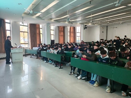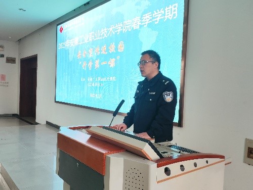 为提升师生安全防范意识,筑牢校园反诈防线,2月27日,学院保卫处联合团委、铜陵市长江路派出所共同开展“安全宣传进校园”开学第一课活动。本次活动以“防范电信网络诈骗”为核心,通过专题讲座、情景模拟、互动问答等形式,为师生带来一堂生动的安全教育课。各院系学生代表200余人参加。