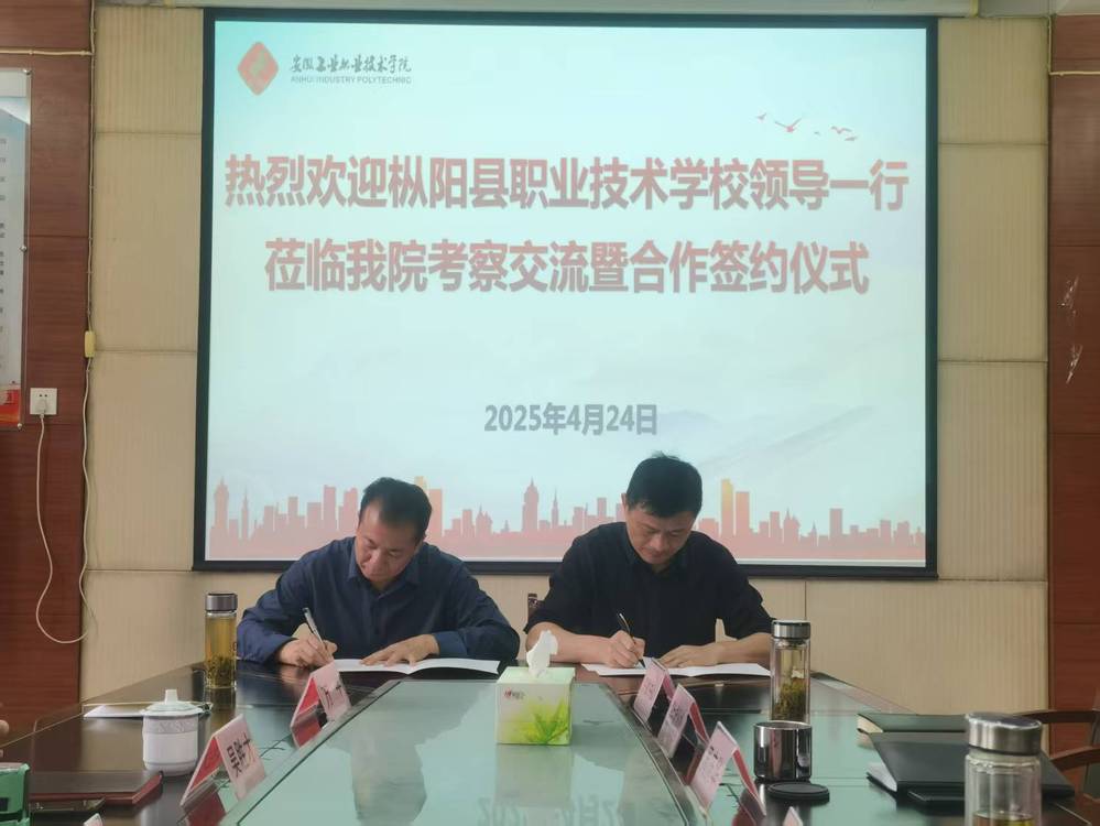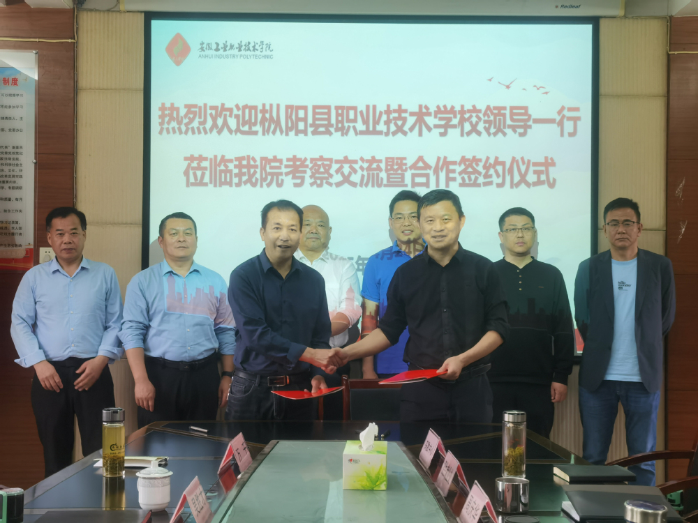 签约仪式上,秦华生对枞阳县职业技术学校各位领导的到来表示热烈的欢迎,详细介绍了安工学院的学院历史、办学特色、发展现状及未来规划,重点介绍了模具设计与制造(金属压力加工)、机电一体化技术等两个中高职衔接专业情况,这两个专业匹配枞阳县四个百亿产业和铜陵主导产业。与会领导实地查看了学院的教学和实训场所,并签订合作举办“3+2”中高职三二分段制相关专业的协议。