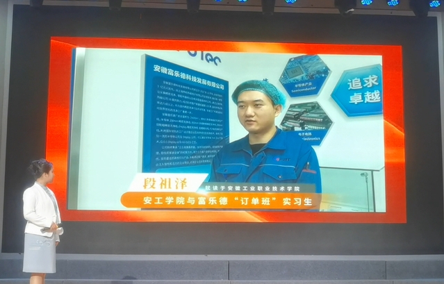 朱红玲老师在推介竞赛中生动的展现了铜陵作为“皖中南之心”的战略地位和高质量发展活力,重点推介了学院利用产教融合破解企业技能人才需求难题,学院在高技能人才培养中的创新实践,以及学院依托现代产业学院、订单班等模式精准对接企业需求等方面内容。现场播放的本学期正在开展的富乐德订单班学生实训场景与企业负责采访视频,生动诠释了“人才定制”对区域产业的支撑作用。