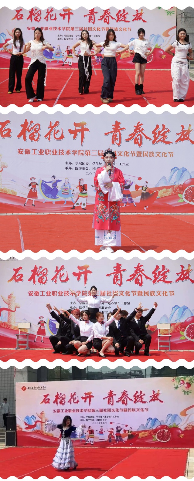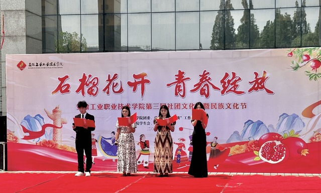 5月25日,金年会jinnianhuicom以“石榴花开,青春绽放”为主题的第三届社团文化节暨民族文化节在教学楼前隆重举行。本次活动由院团委、院学生处“连心锁”工作室主办,通过多元节目展演与文化体验,为师生呈现了一场社团魅力与民族风情交织的盛宴。学院党委副书记、工会主席黄仕银,学生处处长、团委书记及学院新疆派驻教师参加了此次活动。