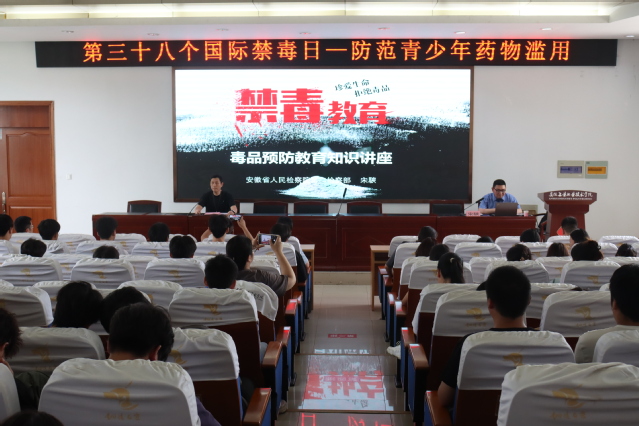在第三十八个“国际禁毒日”到来之际,为切实增强青少年识毒、防毒、拒毒意识和能力,有效预防药物滥用,学院联合安徽省人民检察院、安徽省食品药品监督管理局、铜陵市人民检察院,于6月25日下午在教学楼阶梯201报告厅为师生们带来了一场主题鲜明、内容深刻的毒品预防教育知识讲座。