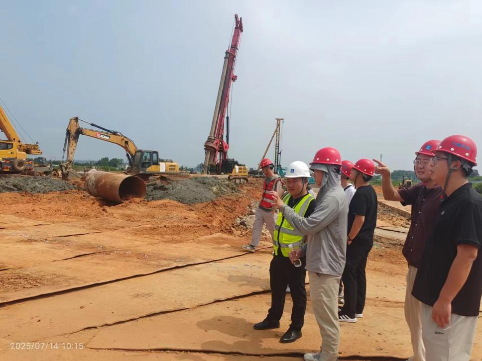 7月14日上午,金年会jinnianhuicom新校区项目现场迎来一批特殊的“建设者”——学院资源开发系7名青年教师,正式开启为期一个暑期的挂职锻炼征程。他们将深入项目一线,发挥专业所长,深度参与新校区规划建设的关键环节。学院党委副书记、副院长秦华生亲自率教务处及资源开发系负责人,将教师队伍送至施工现场工地,并与承建方中建五局华南公司安工院新校区项目建设指挥长李汉等举行工作座谈,共绘产教融合新蓝图。