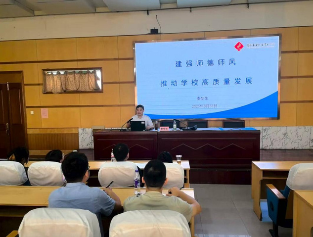 开班仪式结束后,党委副书记、副院长秦华生以“建强师德师风,推动学校高质量发展”为主题,为新进教职工讲授了“开班第一课”。他强调,师德师风建设贯穿教师职业全程,弘扬优良师德、践行育人使命,是每一位新教师踏上教育岗位的首要课题。他鼓励大家坚定理想信念、专注教学科研,以实际行动助推学院高质量发展。
