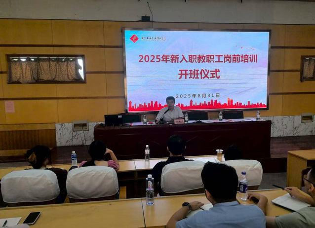 为帮助新进教职员工深入了解学院、尽快融入集体,熟悉岗位职责、树立良好的职业道德与职业荣誉感,促进其职业成长与发展,8月31日上午,学院在阶梯302教室隆重举行2025年新进教职工岗前培训开班仪式。学院党委书记范清义,党委副书记、工会主席黄仕银,组织人事处、教务处负责人,各党支部书记、二级院系教学主任以及2025年全体新进教职工共同参加。仪式由组织人事处副处长主持。