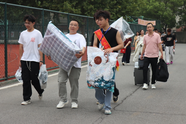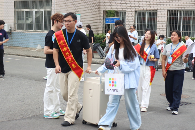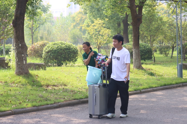 学生志愿者们肩披红绶带、手戴红袖章,热情地穿梭在校园的各个角落。“同学你好,需要帮忙吗?”“叔叔阿姨您放心,交给我们!”一声声问候,一次次伸手,是他们让原本陌生的校园变得亲切,是他们为新生和家长提供路线引导、答疑解惑和搬运行李等服务,成为秋日校园里最靓丽的风景线,也为新生们送去大学的第一份“温暖记忆”。