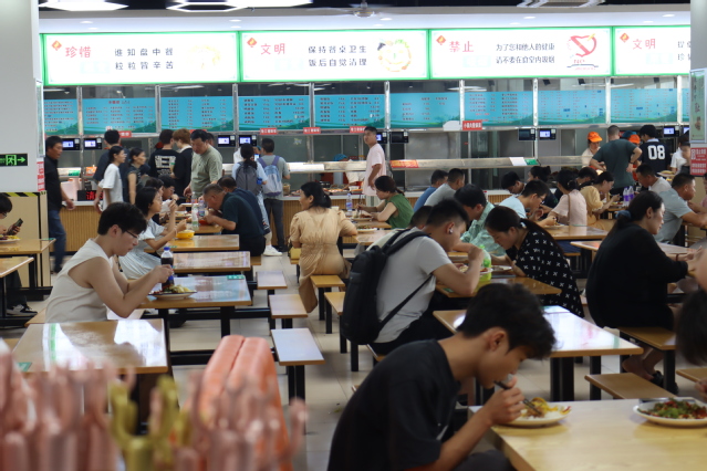 在校门口,学院保卫处联合铜陵市交警,在学校门口疏导交通,维持现场秩序;在宿舍区域,宿舍管理人员们有条不紊,细心为新生办理住宿手续、安排宿舍;在食堂,热腾腾的饭菜和清爽的就餐环境,抚慰了新生和家长们奔波一天的味蕾……