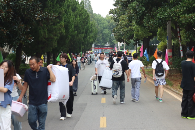 校园内人潮涌动,处处充满了欢声笑语,从校门到教学楼,从报到处到宿舍楼,每一处都洋溢着忙碌而温暖的气息,为整个校园注入了新的生命活力。