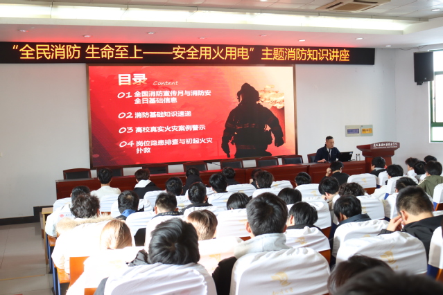 在随后的知识讲座环节,学院保卫处副处长作为主讲人,向同学们阐述了“119全国消防安全日”的由来,结合全国各地发生的多起触目惊心的真实校园火灾案例,以案说理,深入浅出地阐述了火灾的巨大危害与防范的重要性,并重点讲解了如何正确扑救初期火灾、如何在不同火场环境下科学逃生自救等关键知识与技能,叮嘱同学们务必时刻保持警惕,防患于未然。