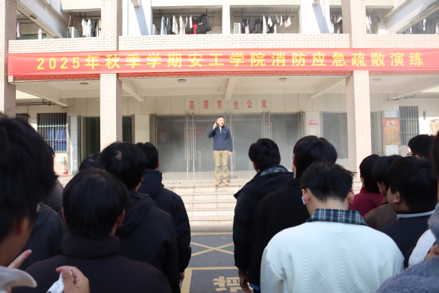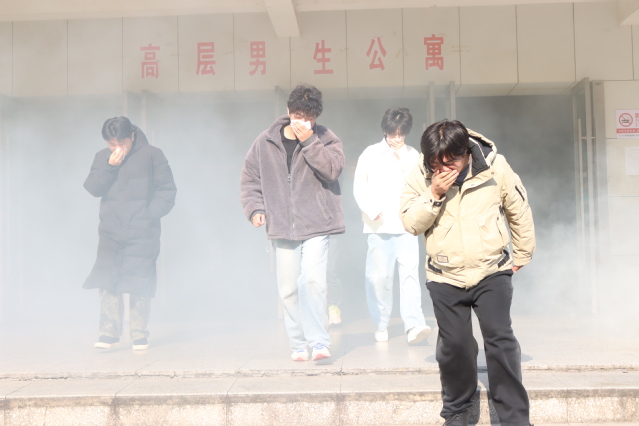 活动当天下午14:00,一场模拟真实火情的消防疏散演练在男生高层公寓3至4层紧张有序地展开。随着警报声响起,同学们在引导员的指挥下,捂住口鼻、低姿弯腰,沿指定疏散路线迅速撤离至安全地带。消防志愿工作人员及时装备完成,赶往起火点完成模拟消防灭火环节。整个过程组织严密、反应迅速、撤离有序,有效检验了宿舍楼消防预案的可行性和师生的应急反应能力。