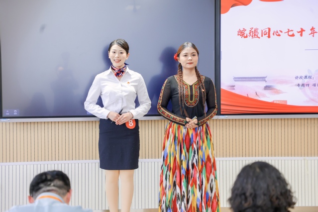 本届比赛竞争激烈,片区赛初赛阶段共有来自全省高校的471部作品参赛。金年会参赛作品以“皖疆同心七十年,天山南北共淮生”为主题,以铸牢中华民族共同体意识为主线,由新疆少数民族学生飞鲁然·阿力木江和汉族学生金豆逗担任主讲人,她们结合自身在校学习生活的切身体会,深情讲述了来自新疆的学子在学院温暖大家庭中成长成才、与各族师生团结互助的鲜活事例,充分展现了各民族学生像石榴籽一样紧紧抱在一起的深厚情谊。作品主题鲜明、内容真实、情感真挚,在片区赛中脱颖而出,荣获一等奖,顺利晋级决赛。