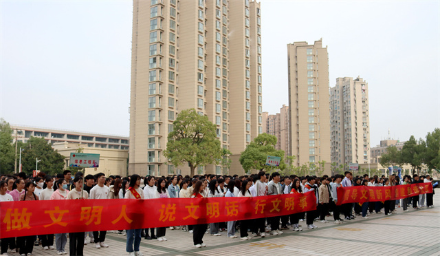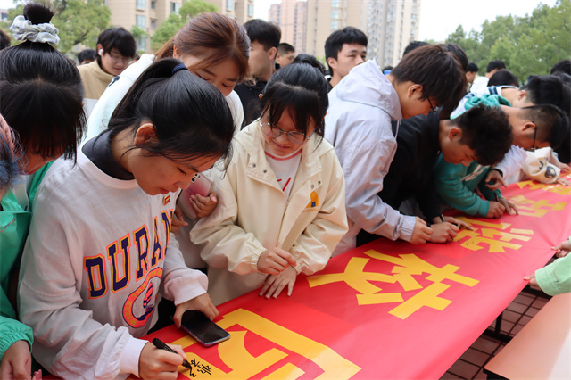 仪式结束后,师生代表纷纷在宣传横幅上签名,庄严承诺在今后的学习生活中的说文明话、行文明事、做文明人,用青春和实际行动唱响文明的音符,共同书写校园文明的新篇章。