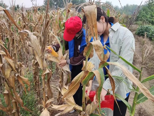 产业振兴:乡村振兴的首要是农村产业要振兴,光辉村发挥蔬菜产业优势,探索“党建+合作社+现代农业”创新模式,走出了一条特色农业之路。实践队员来到田间地头,与劳作农户进行交流,详细了解蔬菜种植、产量、市场行情等情况。为深刻体验农业劳作的不易,队员们还与村民共同进行了玉米采摘劳作,在实践中锻炼提升自我。