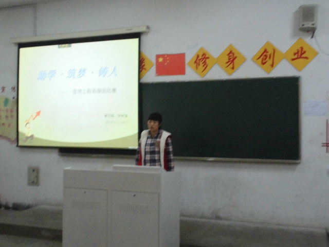 2013年12月6日,由我系举办的以“助学·筑梦·铸人”演讲比赛在教室101成功举办。此 为了丰富同学们的课余文化生活,展示我系学生的青春风采,让同学们树立正确的人生观、价值观,提高自我的表达能力,在国家和学校的助学帮助下完成学业,让我们共同去怀有一颗感恩的心去面对生活,同时也为了提高同学们的演讲能力和口头表达能力,增强自信和自我认同感,提高沟通能力,给大家提供一个展现自我,提升自我的机会和舞台。