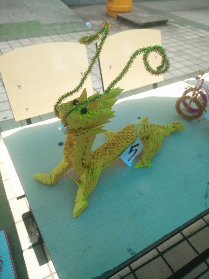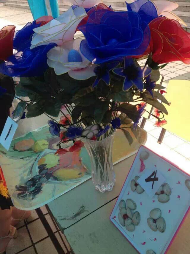 在教学楼广场前举办手工作品展活动。
