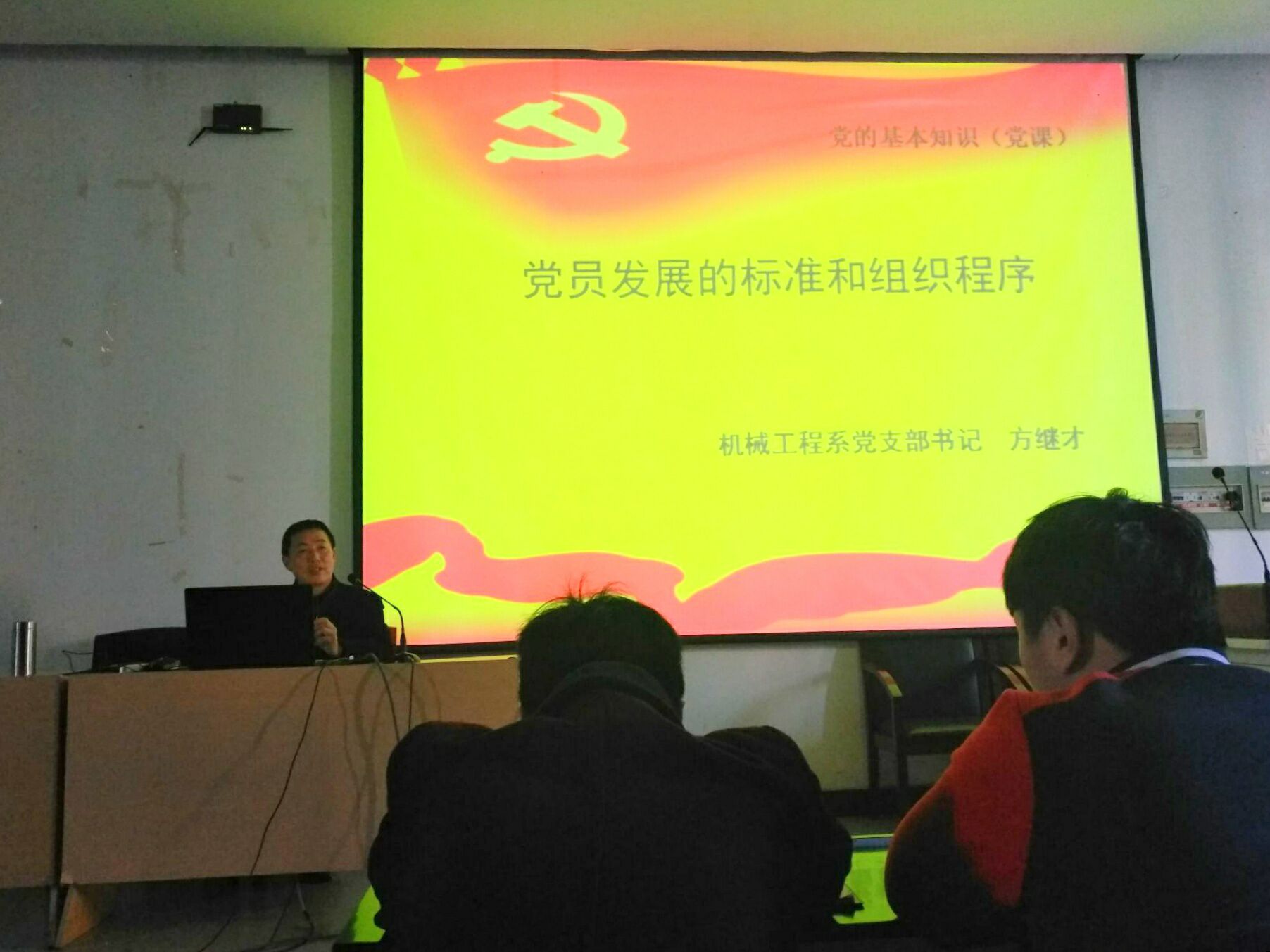 为增强我系16级新生班的思想政治教育,同时也为满足广大新生对党的知识了解与渴求,管理工程系党支部在11月份举办新生党课教育培训班。该培训班分两期进行,第一期开班于11月11日下午2:30,对象为16级会计专业256名新生;第二期开班于11月11日下午3:30,对象为16级物流、营销和电子商务专业的246名新生。本次党课由系党支部组织集中讲授,特邀我系党支部书记汤大益和机械系党支部书记方继才做党的知识专题讲座,相信通过本次新生班党课的培训,管理工程系的同学们定会更加深入地学习党的知识,提高自身的政治素质,为学院和社会的发展做出贡献。