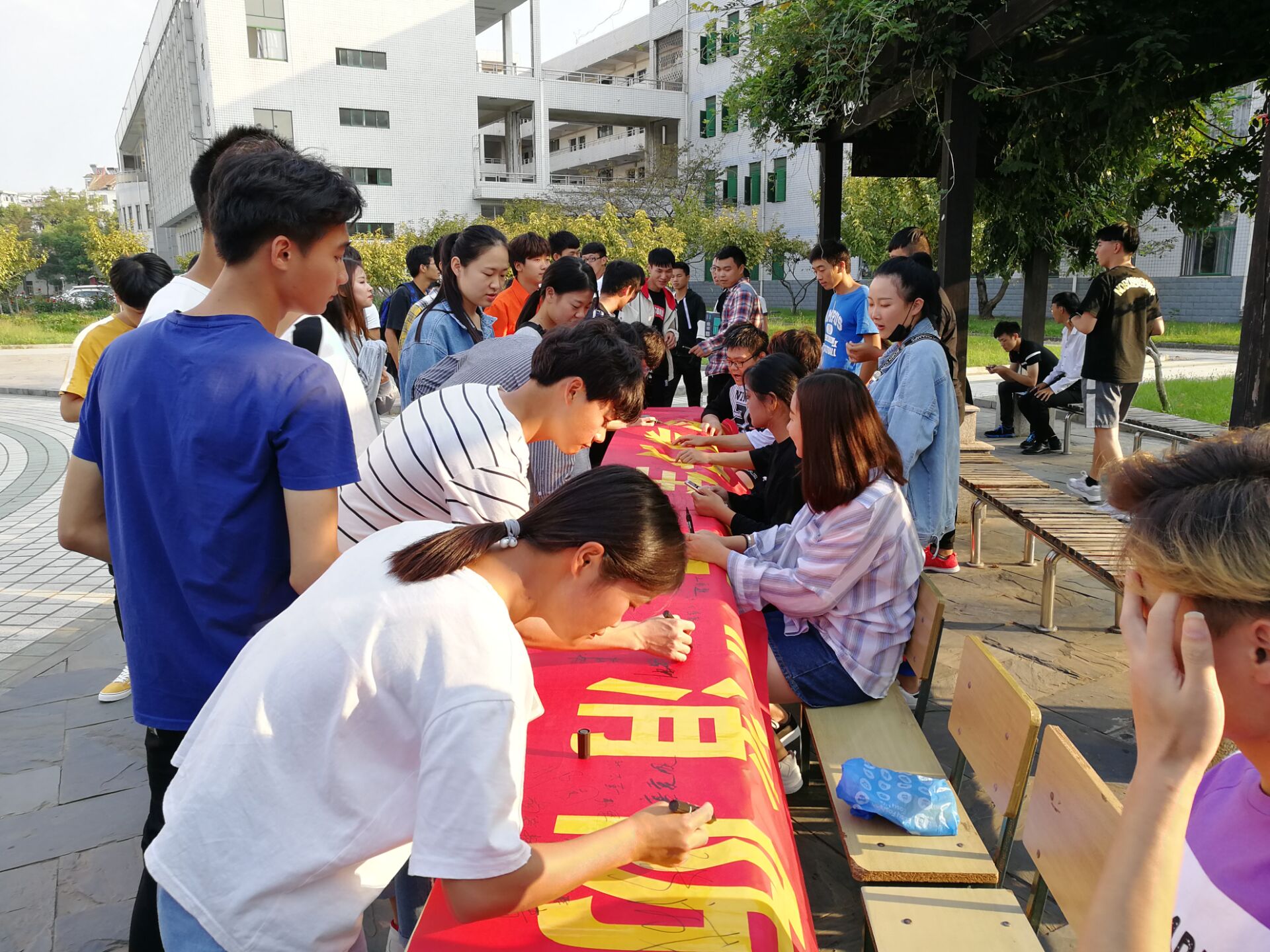 2018年9月 29日,下午4:20——5:20管理工程系治安部组织的“班里安全和消防安全活动”横幅签字在校‘学思园’组织展开。
