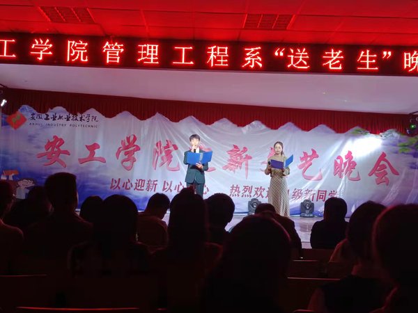 会议共包括三项内容,第一项内容由吴涛做实习动员,并为顶岗实习同学分组。第二项内容由系主任曹有智就顶岗实习做具体指导和安排。第三项是送老生晚会。首先,由吴涛做实习动员讲话,他希望同学们在实习过程中积极将在学校学习到的专业理论知识运用于实践当中,在实习中学有所获。紧接着同学们观看了一台积极向上、温情动人、精彩纷呈、催人奋进的实业生晚会,为离校生送上了一份具有独特意义的礼物。