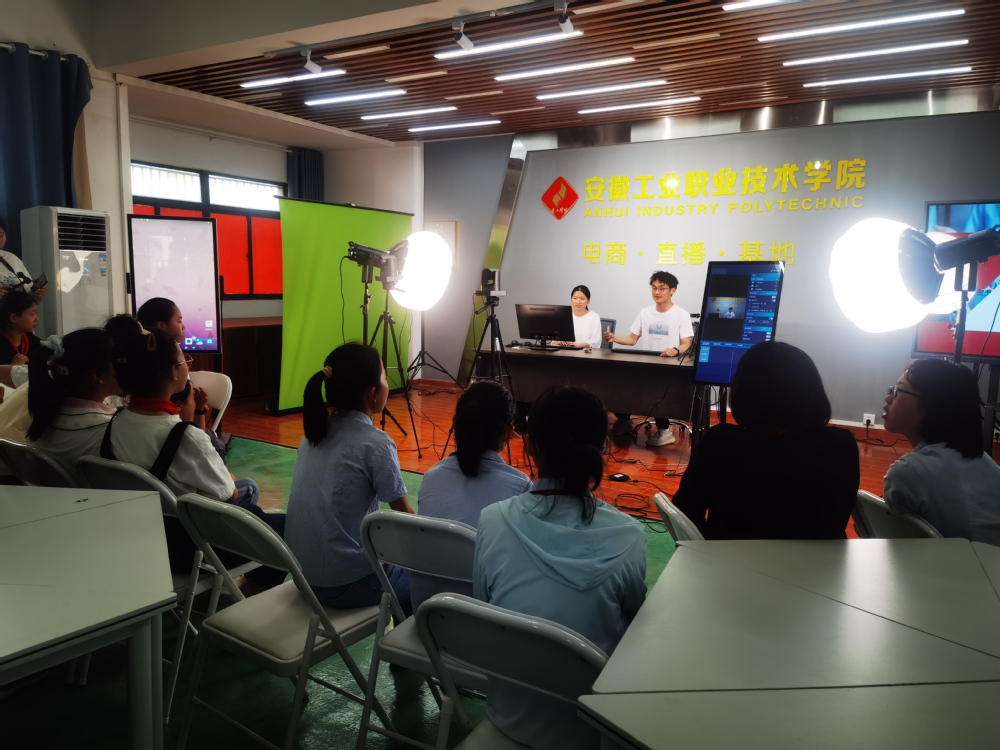 在物流实训室中,实训管理人员左老师实操演练商品堆码、入库及出库流程,学生们认真聆听并提出了问题,听完讲解争先恐后地去操作实训室里的物流设备。在电商直播实训室中,吴老师首先介绍了电商直播这个新兴的行业和直播销售员的岗位职责,电商专业学生进行了现场商品直播演示,在建安小学佘校长的鼓励下,学生们积极踊跃的走上主播台开始直播卖货模拟,开启了他们的直播首秀。