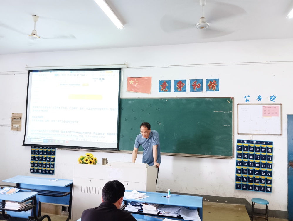 会上,曹主任首先强调了岗位实习的目的和意义,岗位实习是我校人才培养方案中的重要组成部分,各位岗位实习指导老师必须明确责任,尽心指导被分配的21级学生的岗位实习,让学生在实习中要有明确目标和任务,按时下载工学云APP,及时注册填写岗位实习岗位信息,按时签到并写实习周记,遵守企业各项纪律并注意实习安全等。最后曹主任还强调各位实习指导老师要及时将打印好的实习申请表、三方协议和毕业生就业协议书等分发到学生手中,并做好后期收集上交工作。引导学生充分认识到实习工作的重要性,教育学生实习期间爱岗敬业、遵守职业道德操守,服从实习单位的日常管理,全面提升个人竞争力,为将来更好就业奠定基础。