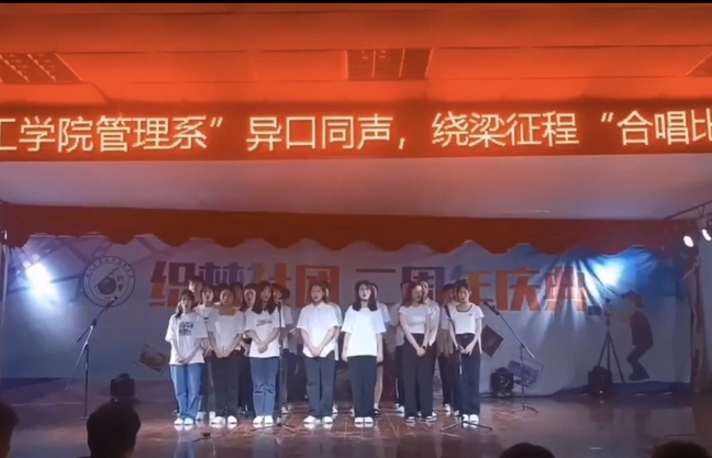 为深入学习宣传贯彻党的二十大精神,进一步丰富校园文化生活,推进学校艺术教育,培养学生艺术审美情趣和爱国的思想意识,展示学生热爱祖国、朝气蓬勃、积极向上的精神风貌。5月20日,管理工程系在图6举办“异口同声,绕梁征程”合唱比赛。