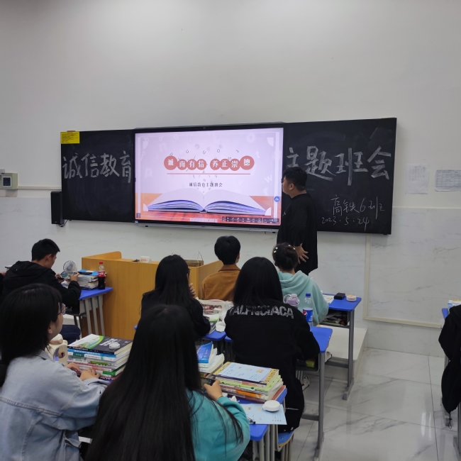 为落实国家资助政策、发挥资助育人功效,增强广大青年学生的诚信意识和责任意识,加大资助育人力度,5月23日,我系各班就诚信教育的主题开展了主题班会,针对国家励志奖学金、国家助学金,国家助学贷款等资助项目流程等学习诚实守信的相关知识,同时也强调了各种竞赛、等级考试等的诚信问题,促进高校学生诚信意识,构建诚实守信的校园文化,推动资助工作持续健康发展。