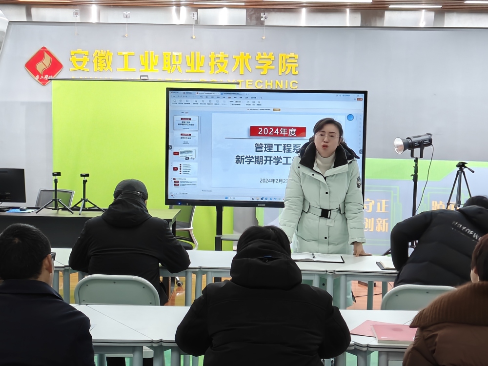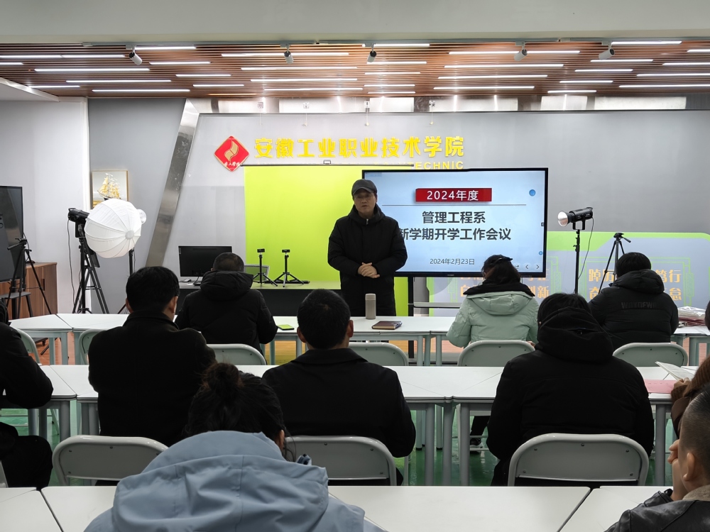 为进一步推进管理工程系新学期各项教学准备工作的顺利开展, 2024年2月23日上午,管理工程系在实训楼南304电商直播实训室召开了2024年春季学期开学教职工大会,暨教学、师德师风提升、雨课堂培训工作会议。管理系全体专兼职教师和辅导员参加了会议。