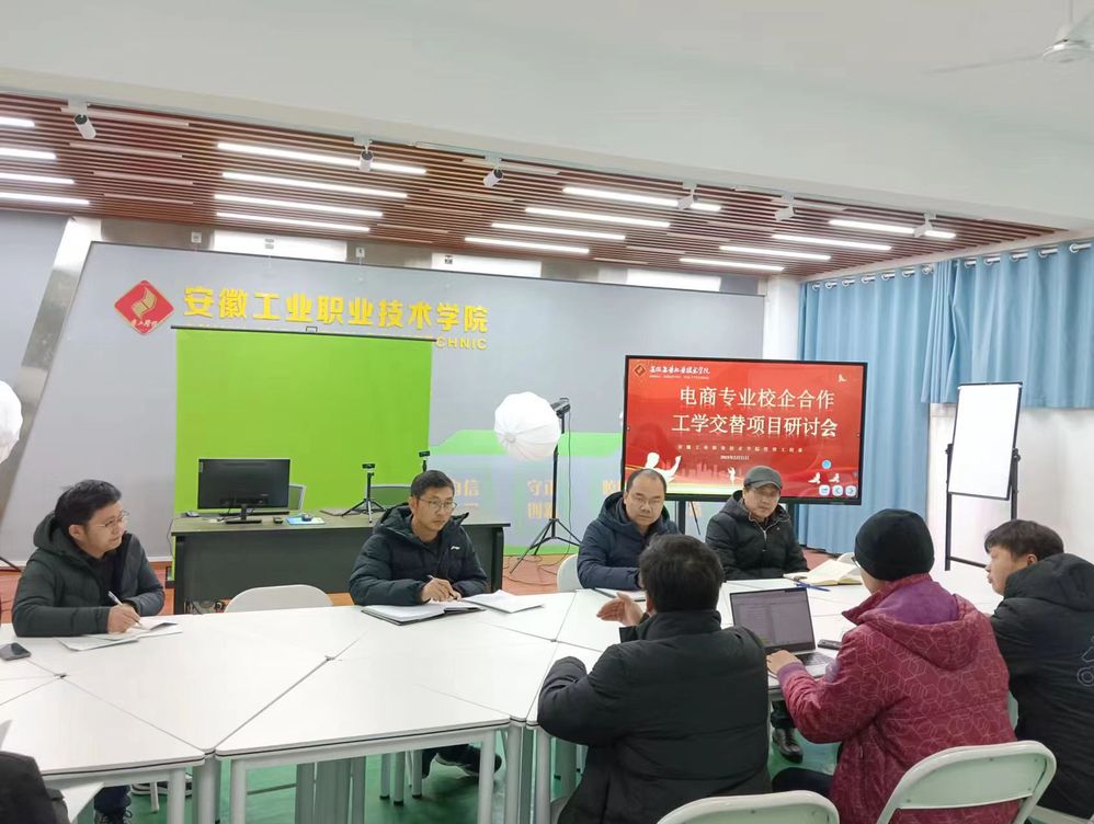 2月21日下午,教务处负责人刘处长、杨处长、管理工程系负责人和电子商务专业带头人、相关专业教师与翰聆产业学院企业负责人、企业教研人员在实训楼南306电商直播室召开研讨会,就2024年度电商专业“匠才”选育实施方案进行研讨。