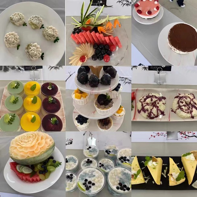 惟妙惟肖的蔬果雕刻、松软可口的蛋糕甜品、香气扑鼻的各色小炒。评委们不仅对选手们的菜品进行了口味和外观的评比,还细致地观察菜品背后所蕴含的故事和文化内涵。学生们尽情品尝、拍照打卡,尽享美好校园“食”光,体味有趣有爱、多姿多彩的校园文化生活。