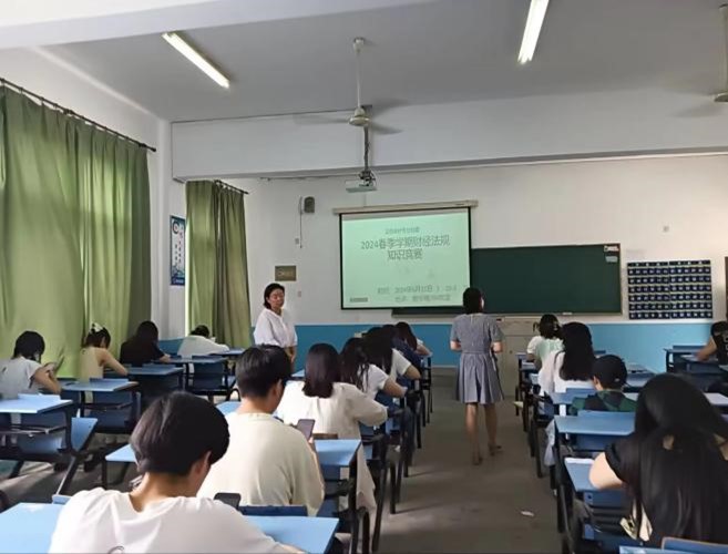 为进一步提高学生学习财经法规知识的积极性,2024年6月14日,由管理工程系教师汪平和李翎举办的“财经法规知识竞赛”在教学楼201教室、202教室、203教室、204教室举行,来自23大数据与会计和23大数据与财务管理两个专业的学生参加本次比赛。