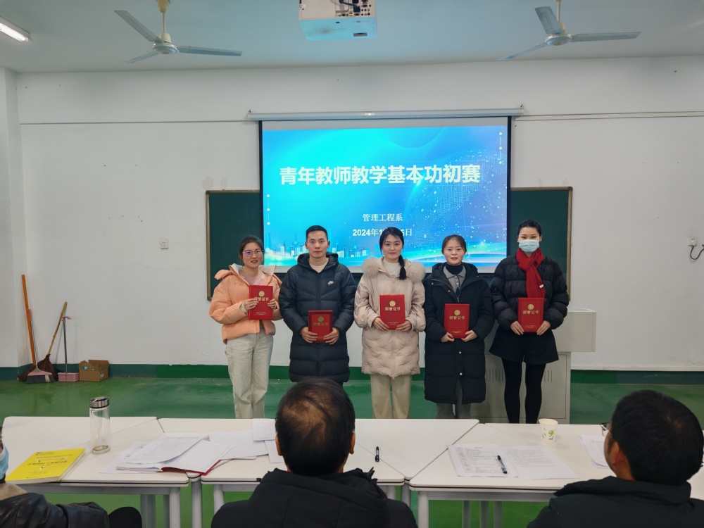 2024年12月26日下午6点半,管理工程系在实训楼南305电商直播实训室开展青年教师教学基本功大赛初赛,六位管理系青年教师参加了本次比赛,担任此次比赛的评委有管理系主任曹有智、副主任吴涛和其他专业骨干教师。
