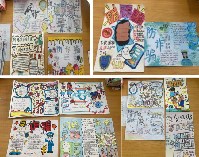 活动旨在让同学们通过制作手抄报,深入了解各类诈骗手段,切实提高警惕,增强防诈骗能力。同学们在创作过程中,深入探究不同诈骗作案手法及特点,将重要信息用醒目颜色着重标记,作品创意十足,令人眼前一亮。