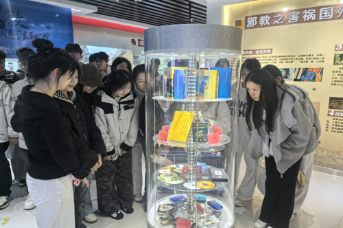 在基地工作人员的引导下,学生们通过图文展板、典型案例视频、互动体验等形式,系统了解邪教的本质特征、危害后果及迷惑手段。大家认真聆听讲解,针对“如何辨别邪教伪装”“遇到邪教宣传该怎么办” 等问题积极提问,现场讨论热烈。带队老师结合案例强调,青年学生需树立科学观念,自觉抵制邪教侵蚀。