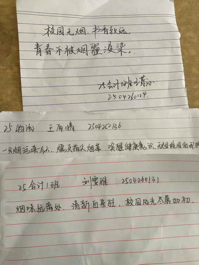 征集活动自启动以来,得到了广大师生的积极响应和踊跃参与。师生们结合学习生活实际,创作出一批主题鲜明、语言生动、富有感染力的禁烟标语。如“清新校园,从无烟开始”“健康你我他,禁烟靠大家”“熄灭手中烟,点燃青春梦”等作品,既体现了对健康的追求,也展现了师生积极向上的精神风貌。
