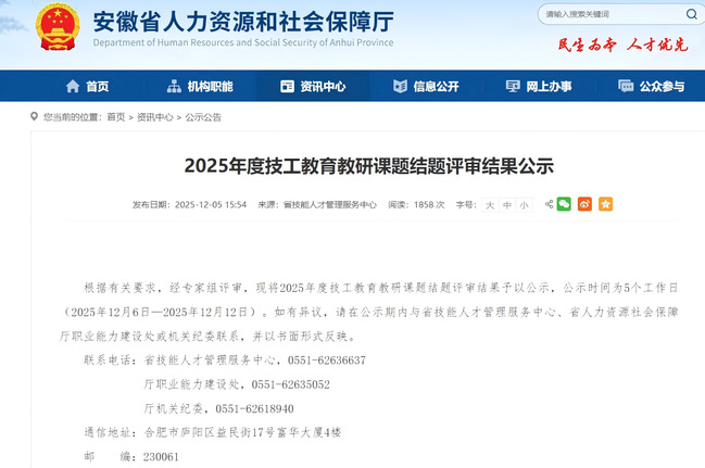 近日,根据安徽省人力资源和社会保障厅发布的《2025年度技工教育教研课题结题评审结果公示》,经过省厅专家组评审,我系教研课题《职业技能竞赛对专业教学改革影响的研究》喜获结题评审通过。