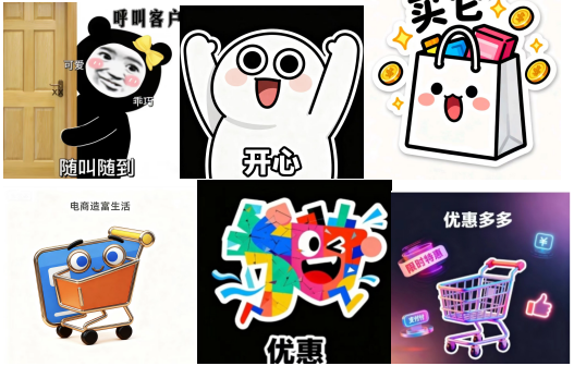 比赛过程中,社员们积极参与、大胆创作,展现出扎实的设计功底与活跃的创新思维。参赛作品以静态表情包为主要形式,巧妙地融入了商品元素、营销话术、物流符号等电商场景,同时赋予其更丰富的生活气息与情感表达。设计师们生动运用高饱和度的色相搭配,强化了视觉冲击力与情感张力,精准传递出情绪与态度。这些作品不仅辨识度高、实用性强,更以年轻化、趣味化的方式,在校园社交场景中有效传播了电商文化与职业认同。