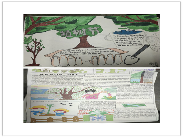通过此次手抄报创作比赛活动,同学们从多种渠道了解了植树节的来历及所包含的文化内涵,加深了对传统文化的理解、增长了对传统文化与传统节日的认识同时在创作过程中激发了学生学习英语的兴趣,提高了学生的英语书写能力,让同学们从中体验到了英语创作的乐趣。