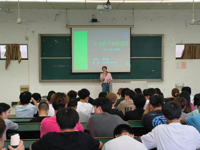 为让金年会学生充分了解刑法中关于正当防卫的理论及“正当防卫”的司法适用,6月19日下午,基础班邓佳丽老老师,在阶梯102教室举行了以“正当防卫如何适用”暨电影《第二十条》法条解析为题的专题讲座。