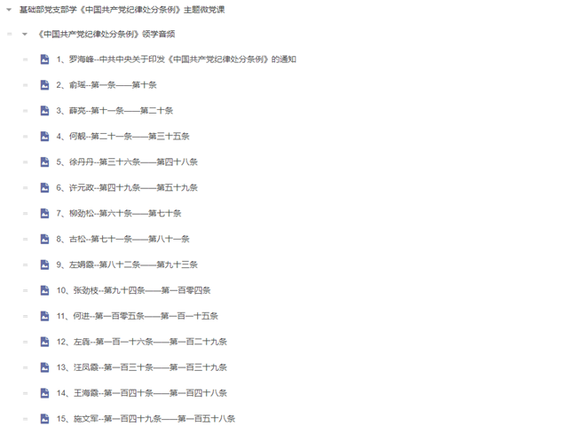 每一个领学音频都是一堂生动的党纪微党课,教师在讲述纪律的同时也在加深对纪律的认识与理解。支部党员高度重视、认真准备,准确把握本次行动主题,切实做到“读原文、学原著、悟原理” ,原原本本学习《条例》内容,并在最后提交个人学习交流的发言材料。