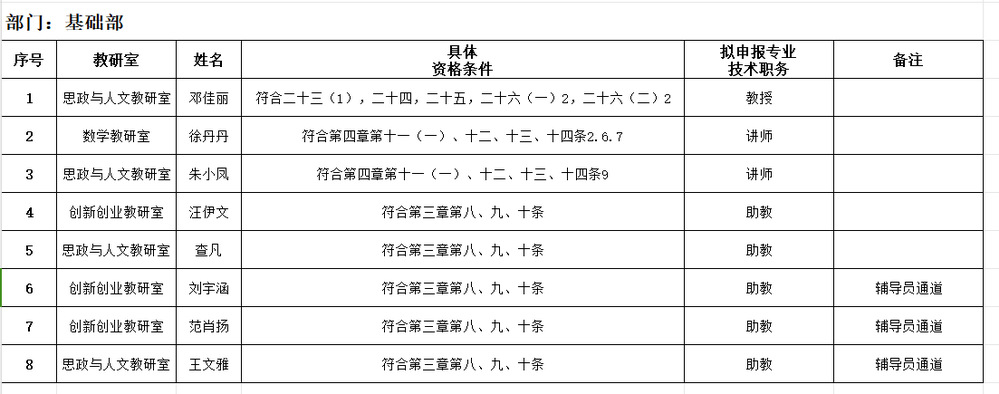 按照学院《金年会jinnianhuicom关于做好2024年度高校教师和实验技术人员专业技术职务任职资格评审工作的通知》精神,我部对申报人的基本信息及业绩材料的合规性、真实性审核,现将2024年度高校教师系列专业技术职称基础部申报情况进行公示,公示时间:2024年10月28日-2024年11月1日。如发现所报材料不实,请在公示期间电话或书面(实名)向基础部办公室(电话:2864161)反映。