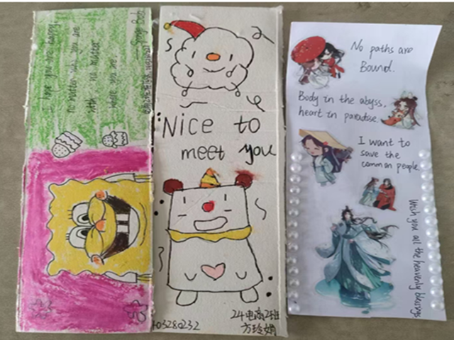 为了激发同学们对英语学习的热情,提升他们的动手能力和艺术修养。我校英语社团于2024年11月24日教学楼413教室举办了一场创意十足的“DIY书签”活动。