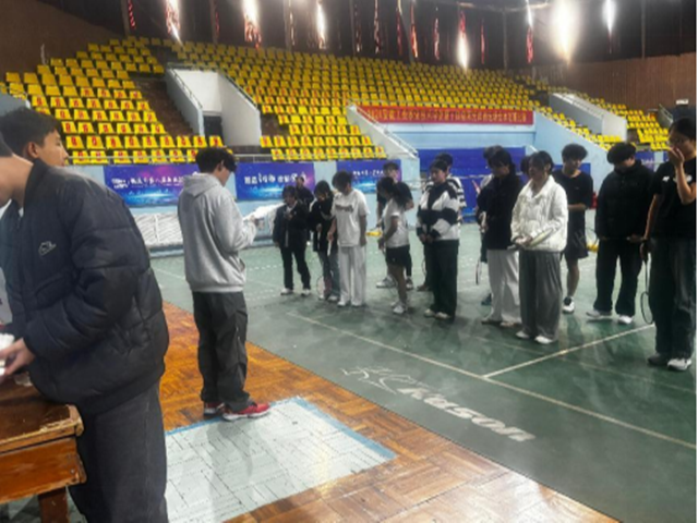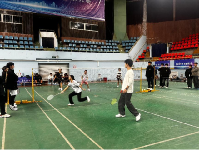 为活跃校园体育文化氛围,提高同学们的身体素质,增进同学们之间的友谊。2024年11月29日下午,学院羽毛球协会举办的“落日“羽”晖,“羽”你而归”羽毛球混合双打比赛活动在天井湖校区铜官体育馆举行。社团指导老师孙彪,朱红玲指导,协会部长许家豪、社长程伟豪、副社葛宇晴组织,本次活动设置了混双一个项目,共有9支队伍参赛。